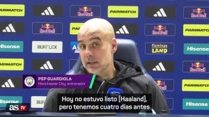 欧洲中部时间3月7日21点,曼城将在足总杯中对阵纽卡,同时4天后就要奔赴伯纳乌迎来欧冠1/8决赛首回合较量。瓜迪奥拉表示:“我现在无话可说,哈兰德今天还没准备好出场,我们在对阵诺丁汉森林前有4天休息,之后只隔3天就要在晚上20点踢对阵纽卡的足总杯。非常感谢这样的赛程安排,让我们能带着更少的恢复时间,‘更好地’备战皇马。