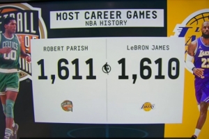 詹姆斯今日确认出战,将与罗伯特·帕里什并列历史第一