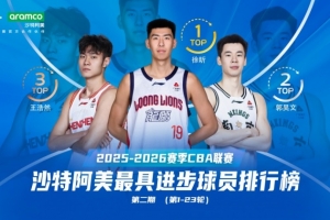 【2025-2026赛季CBA联赛第1-23轮沙特阿美最具进步球员排名第一——徐昕】徐昕本赛季效力于龙狮篮球俱乐部,在其CBA生涯第五个赛季迎来明显进步。徐昕在常规赛前二十三轮出战20场,场均上场23.6分钟,能够得到10.7分、8.0篮板、0.8助攻、2.1盖帽、投篮命中率75.7%(五项数据均为生涯新高)。徐昕场均得分在队内本土球员中仅次于郭艾伦。场均盖帽更是位列联赛第一。恭喜徐昕在2025-2026赛季CBA联赛第1-23轮沙特阿美最具进步球员排名中名列第一!