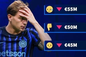 现年29岁的巴雷拉本赛季为国米各项赛事出战35场,收获1球7助。他目前的身价为6000万欧,巅峰身价则是两年前的8000万欧。此次下跌,将是巴雷拉的身价4连跌。
