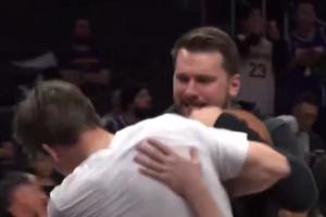 GIF-东契奇&里夫斯赛前“互殴”