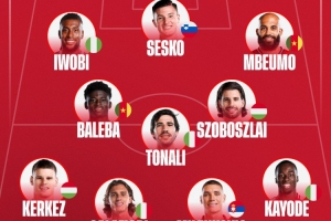 中场:巴莱巴(喀麦隆)、托纳利(意大利)、索博斯洛伊(匈牙利)