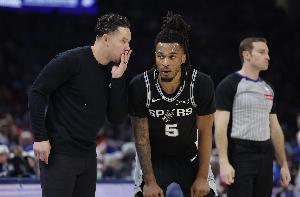 相关新闻—死死贴防!卡斯尔和主帅米奇沟通 阿门寸步不离 不忘交流一波