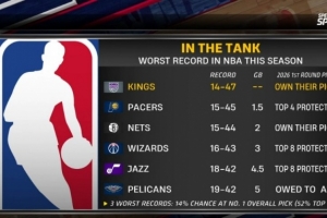 国王 14胜47负 握有自己的首轮签